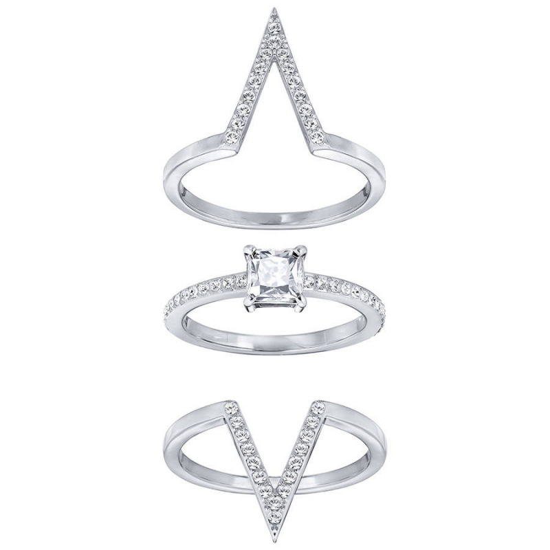 В этом роскошном кольце с родиевым покрытием классический блеск изумительно сочетается с современным стилем. Это разноплановое изделие: три кольца можно носить вместе или по отдельности в сочетании с другими украшениями. Квадратный кристалл сверкает на фоне шевронов с прозрачным кристальным паве. Такой аксессуар мгновенно внесёт в ваш костюм ноту изысканности. Чтобы получился ещё более яркий образ, добавьте другие украшения из коллекции Funk.