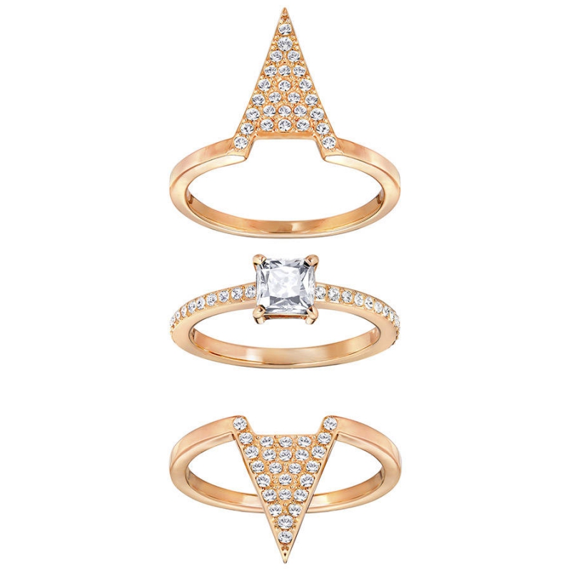 В этом роскошном кольце с покрытием из розового золота классический блеск изумительно сочетается с современным стилем. Это разноплановое изделие: три кольца можно носить вместе для создания графического силуэта или по отдельности, в сочетании с другими украшениями. Квадратный кристалл сверкает на фоне V-образных элементов с прозрачным кристальным паве. Такой аксессуар мгновенно внесёт в ваш костюм ноту изысканности. Чтобы получился ещё более яркий образ, добавьте другие украшения из коллекции Funk.