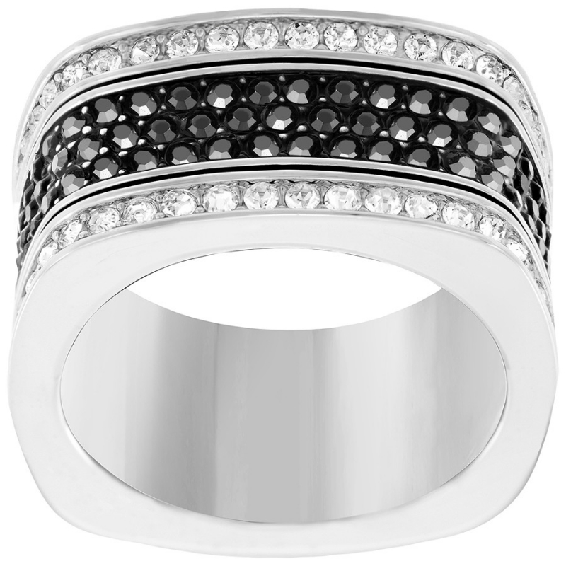 Это новая вариация на тему популярного кольца Swarovski Vio. Кольцо уникального квадратного силуэта с родиевым покрытием универсально. Оно легко впишется в любой образ. Вся его поверхность покрыта чёрными и прозрачными кристаллами в закрепке паве. | |