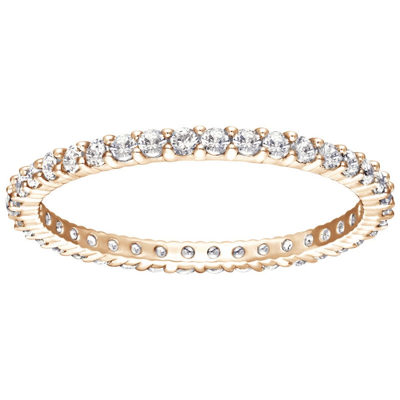 Сегодня актуальны миниатюрные украшения, такие как это популярное кольцо, классическое и в то же время модное. Оно теперь выпускается и с покрытием из розового золота. Кольцо со всех сторон сверкает шатонами. Оно особенно эффектно смотрится в сочетании с другими кольцами.