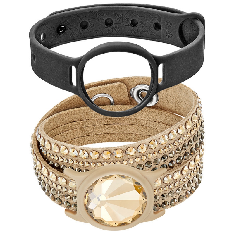 Этот комплект включает в себя элегантный трекер активности Activity Crystal (27,5 х 10 мм) и два специальных браслета. Трекер Activity Crystal из золотистого кристалла эксклюзивной огранки Swarovski регистрирует параметры активности и сна и синхронизируется со смартфоном. К тому же, его можно использовать в качестве пульта дистанционного управления фотокамерой и музыкой. В комплект поставки входит батарейка и мешочек из синего тюля. Трекер можно вставить в минималистичный чёрный спортивный браслет или в удобный лёгкий браслет Slake Deluxe из бежевой алькантары с россыпью сверкающих кристаллов. Оба браслета совместимы также с устройством Misfit Shine 1. Трекер Activity Crystal водонепроницаем на глубине до 50 м. В нём можно плавать и заниматься водными видами спорта, но нельзя нырять. | |