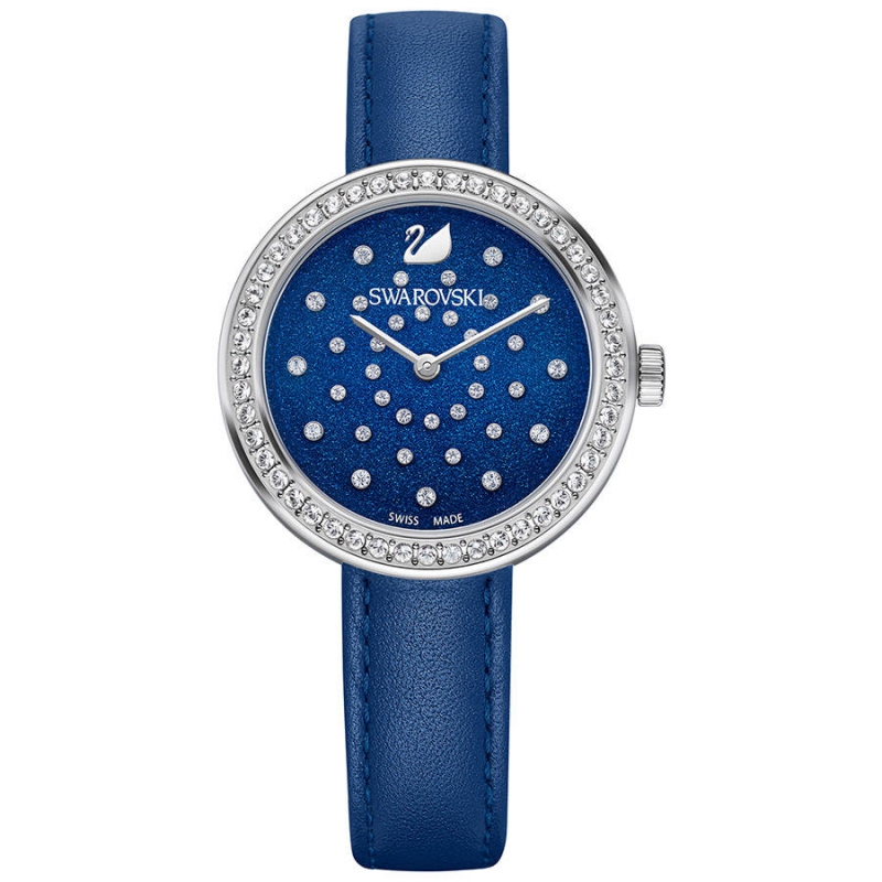 Разноплановые сверкающие часы на каждый день прекрасно впишутся в любой костюм. Синий циферблат с закреплёнными вручную кристаллами и синий кожаный ремешок красиво оттеняют безель с 48 прозрачными кристаллами. Корпус – 34 мм; водонепроницаемость на глубине до 30 м; сделано в Швейцарии. Добавьте свои любимые браслеты Swarovski, и получится броский образ. | |