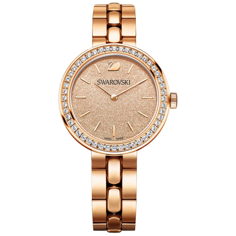 Роскошные стильные часы, которые прекрасно смотрятся и днём, и вечером. Характеристики: корпус из нержавеющей сталис PVD покрытием из розовогозолота с 48 прозрачнымикристаллами., 34 мм Сверкающий светлый циферблатперсикового цвета, метки с PVDпокрытием из розового золота и логотипом в виде лебедя на уровне 12 часов; полированный металлическийбраслет с PVD покрытием изрозового золота, 21 см; кварцевый механизм сделан в Швейцарии. | |