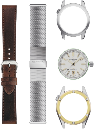 Certina Sport & Urban - модель из коллекции DS+ основанная на инновационной концепции швейцарского бренда. Набор включает в себя не одни часы, а элементы, которые позволяют создать целых четыре комбинации! В комплект входят: один часовой модуль, два корпуса, коричневый кожаный ремешок и стальной миланский браслет. Прозрачная задняя крышка позволяет наблюдать за работой автоматического механизма Powermatic 80, запас хода которого составляет до 80 часов.