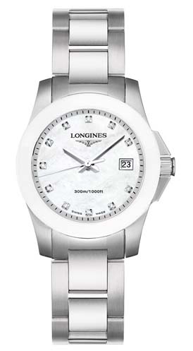 Женские кварцевые часы (ETA 956.112), корпус и браслет из нержавеющей стали (316L) с керамической вставкой, диаметр корпуса 29,5 мм, сапфировое стекло, функции: дата, часы, минуты, и секунды, водозащита до 30 атм.