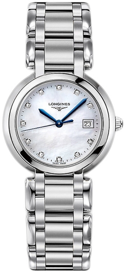Женские швейцарские механические часы с автоподзаводом Longines PrimaLuna L8.122.4.87.6. Исключительно женственная коллекция. Округлые, нежные линии Longines Prima Luna - дань преклонения перед женственной Луной, символом переменчивости времени. Сапфировое стекло устойчивое к появлению царапин, обладающее высокой прозрачностью. Корпус часов изготовлен из нержавеющей стали. Изысканная чистота циферблата подчеркивает ее мягкий силуэт, обрамленный сиянием бриллиантов. Окошко даты в положении 3 часов. Класс водозащиты: 30 метров, позволит защитить корпус от случайных брызг или капель дождя. Стальной браслет на застёжке-бабочке с кнопками.
