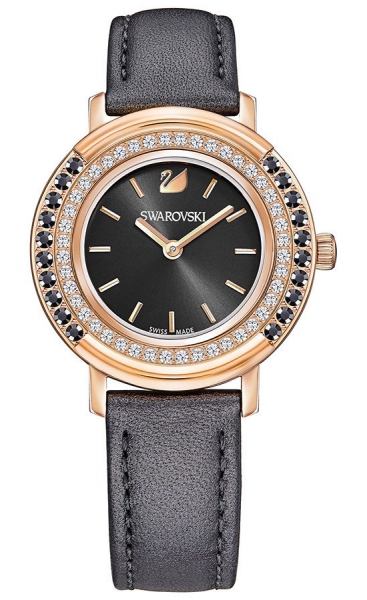 | В этих игривых часах наружная часть безеля вращается, обнажая кристаллы разных цветов. Это позволяет создавать разные образы. Просто выберите чёрные или прозрачные кристаллы под настроение и в зависимости от костюма. Завершающие штрихи этой классической модели – тёмно-серый ремешок из натуральной кожи, корпус из нержавеющей стали с покрытием оттенка розового золота и серый перламутровый циферблат. Корпус – 34 мм; водонепроницаемость на глубине до 50 м; сделано в Швейцарии. | |
