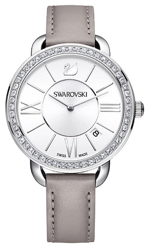 | Эти элегантные сверкающие часы Swarovski оригинальной расцветки прекрасно подходят на каждый день. Характеристики: корпус из нержавеющей стали с 52 прозрачными кристаллами на безеле, 37 мм; серебристо-белый циферблат с рисунком в виде солнечных лучей с закреплёнными метками и римскими цифрами и логотипом в виде лебедя на уровне метки 12 часов; серо-коричневый ремешок из натуральной кожи, 20 см; кварцевый механизм сделан в Швейцарии. | |