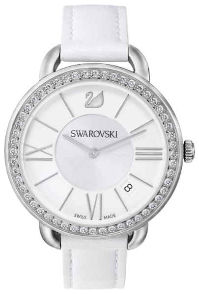 | Эти актуальные сверкающие часы Swarovski станут элегантным дополнением к повседневному образу. Описание: корпус – нержавеющая сталь с 52 прозрачными кристаллами, 37 мм; циферблат – серебристо-белый, с рисунком в виде солнечных лучей, с матовым серебристо-белым кольцом по внешнему краю, метки с родиевым покрытием, римские цифры на уровне меток 3, 6 и 9 часов; ремешок – белая телячья кожа с белой прострочкой; механизм – кварцевый, сделан в Швейцарии; стекло - куполообразное, минеральное; водонепроницаемость - 30 м. | |