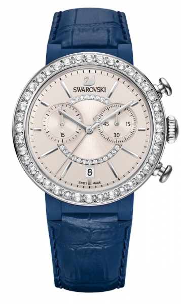| Этот спортивный современный хронограф с кристаллами внесёт в образ женственную ноту. Эти часы отличаются лёгкостью и удобством благодаря инновационному корпусу из стекловолокна и ремешку из натуральной кожи синего цвета.. Циферблат с рисунком в вид лучей дополнен часовыми метками из нержавеющей стали, двумя хронометрами и индикатором даты. Корпус 38 мм; водонепроницаемость на глубине до 50 м; сделано в Швейцарии. | |