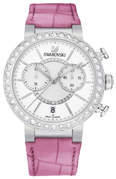 | Эти модные спортивные часы станут ярким цветовым акцентом вашего повседневного образа. Описание: корпус – нержавеющая сталь с 40 прозрачными кристаллами, 38 мм; циферблат – белый, с рисунком в виде солнечных лучей, прозрачное кристальное паве в центре, 2 дополнительных циферблата; цифры – закреплённые метки с родиевым покрытием, логотип в виде лебедя на уровне метки 12 часов, индикатор даты на уровне метки 6 часов; ремешок – розовая телячья кожа с тиснением под крокодила, шпеньковая пряжка из нержавеющей стали; механизм – кварцевый, сделан в Швейцарии; стекло - сапфировое; водонепроницаемость - 30 м. | |