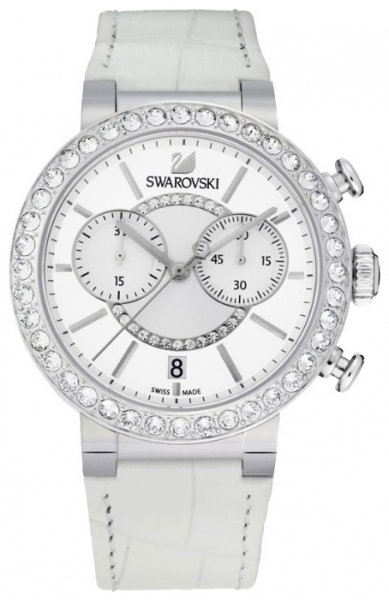 | Эти сверкающие часы внесут в ваш образ чарующую женственную ноту. Описание: корпус – нержавеющая сталь с 40 прозрачными кристаллами, 38 мм; циферблат – серебристо-белый с рисунком в виде солнечных лучей, круг из прозрачного кристального паве в центре, индикаторы хронографа; цифры – закреплённые метки с родиевым покрытием, логотип в виде лебедя на уровне метки 12 часов, индикатор даты на уровне метки 6 часов; ремешок – белая телячья кожа с тиснением под крокодила; механизм – кварцевый, сделан в Швейцарии; стекло - сапфировое; водонепроницаемость - 30 м. | |