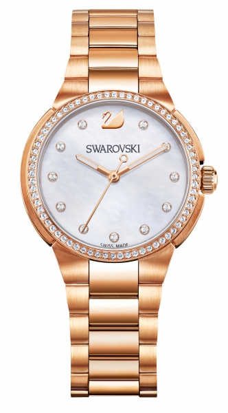| Изысканные шикарные часы на браслете City Mini прекрасно подходят на каждый день. Перламутровый циферблат и браслет из нержавеющей стали с покрытием оттенка розового золота красиво оттеняют 68 прозрачных кристаллов на безеле. Корпус 32 мм; водонепроницаемость на глубине до 50 м; сделано в Швейцарии. Эти часы стильно смотрятся в сочетании со сверкающими жёсткими браслетами. | |