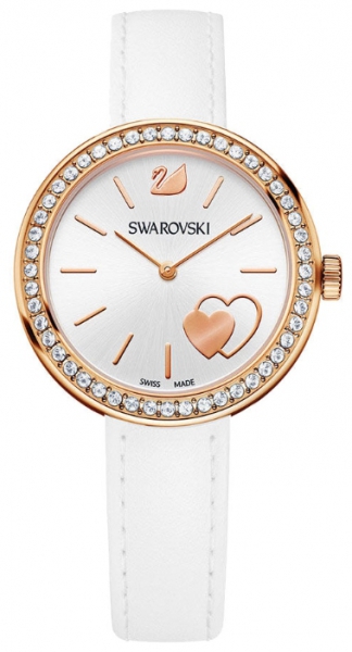 | Эти стильные романтичные часы станут идеальным подарком на День святого Валентина. Характеристики: корпус из нержавеющей стали с PVD покрытием из розового золота с 48 прозрачными кристаллами на безеле, 34 мм; cеребристо-белый циферблат с рисунком в виде солнечных лучей с метками и сердечком с PVD покрытием из розового золота и логотипом в виде лебедя на уровне 12 часов; белый ремешок из натуральной кожи, 19 см; кварцевый механизм сделан в Швейцарии. | |