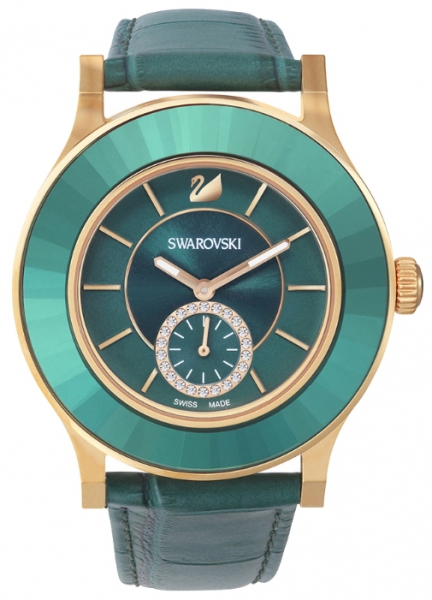 | Эти классические и в то же время модные часы привлекут всеобщее внимание потрясающим сочетанием изумрудно-зелёного цвета и оттенка розового золота. Описание: корпус – нержавеющая сталь, PVD покрытие из розового золота, 39 мм; безель – огранёная керамика изумрудного цвета; циферблат – изумрудного цвета; цифры – метки с PVD покрытием из розового золота, маленький секундомер в круглом обрамлении из кристального паве, логотип в форме лебедя на уровне метки 12 часов; ремешок – зелёная телячья кожа с тиснением под крокодила, пряжка с PVD покрытием из розового золота; механизм – кварцевый, сделан в Швейцарии; стекло - сапфировое; водонепроницаемость - 30 м. | |