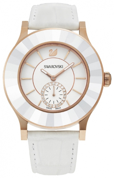 | Эта женственная модель никого не оставит равнодушным за счет модного PVD покрытия из розового золота и белой керамики. Описание: корпус – нержавеющая сталь, PVD покрытие из розового золота, 39 мм; безель – керамика белого цвета; циферблат – белый; цифры – метки с PVD покрытием из розового золота, секундная стрелка расположена в отдельном циферблате из прозрачного кристального паве, логотип в виде лебедя на уровне метки 12 часов; ремешок – белая телячья кожа с тиснением под крокодила; механизм – кварцевый, сделан в Швейцарии; стекло - сапфировое; водонепроницаемость - 30 м. | |