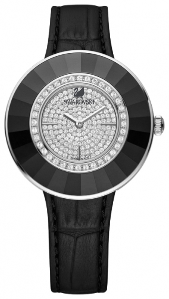 | Эти неброские утончённые часы идеально подойдут для офиса и прекрасно дополнят элегантный вечерний наряд. Характеристики: корпус – нержавеющая сталь, 36 мм; безель – чёрный; циферблат полностью покрыт кристаллами в технике паве; цифры – метки с родиевым покрытием на уровне 3, 6 и 9 часов, металлизированный логотип в виде лебедя на уровне 12 часов; ремешок – чёрная телячья кожа с тиснением под крокодила, пряжка из нержавеющей стали; механизм – кварцевый, сделан в Швейцарии; стекло - сапфировое; водонепроницаемость - 30 м. | |