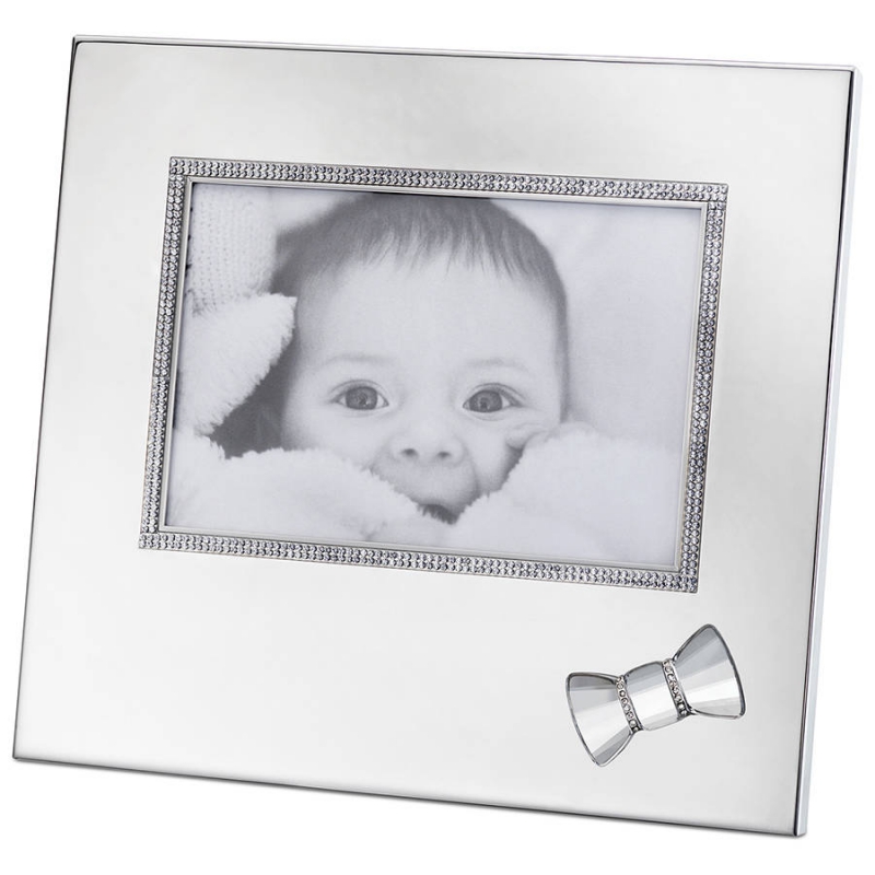 Эта изысканная фоторамка из нержавеющей стали с миниатюрными кристаллами украшена съёмным бантом из прозрачных кристаллов на магните. Её можно как поставить, так и повесить. Это прекрасное обрамление для фотографии малыша и замечательный подарок будущей маме. Декоративный объект. Не игрушка. Не подходит для детей младше 15 лет. | |
