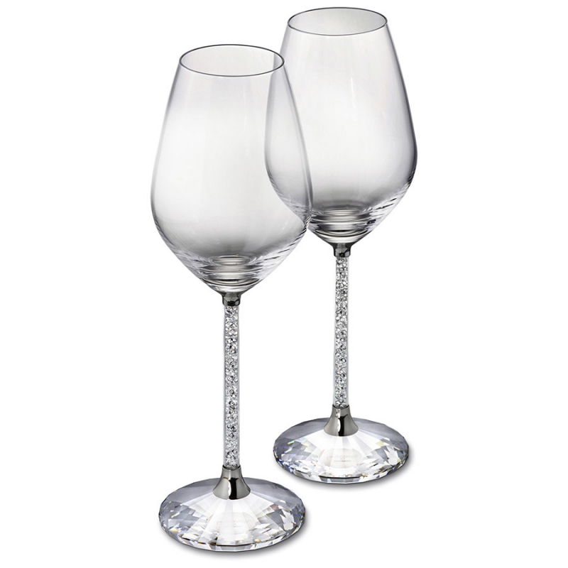 Подайте красное вино в этих изысканных современных бокалах, и ужин станет незабываемым. Ножки бокалов заполнены сверкающими прозрачными кристаллами, а основание сделано из большого гранёного прозрачного кристалла. Не игрушка. Не подходит для детей младше 15 лет. | |
