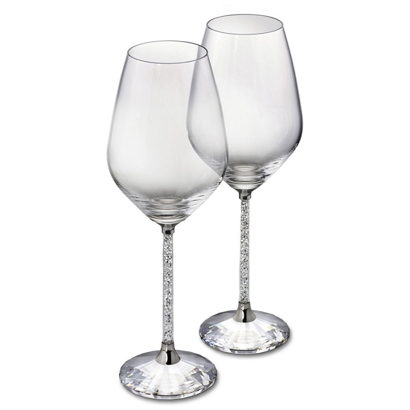 Подайте белое вино в этих изысканных современных бокалах, и ужин станет незабываемым. Ножки бокалов заполнены сверкающими прозрачными кристаллами, а основание сделано из большого гранёного прозрачного кристалла. Не игрушка. Не подходит для детей младше 15 лет. | |