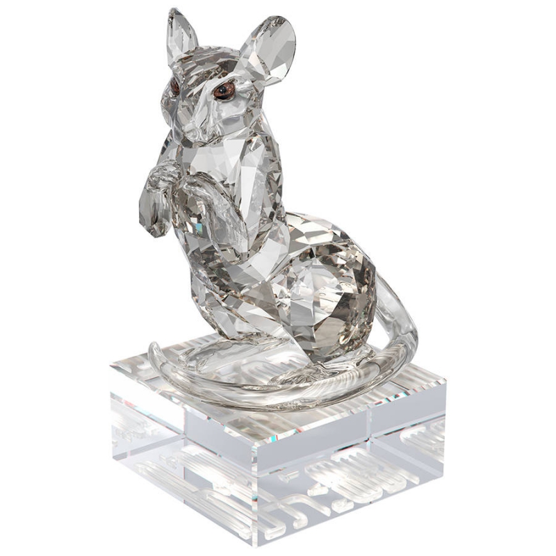 В китайском зодиаке Крыса символизирует ум, обаяние и благосостояние. Эта мастерски исполненная фигурка сделана из кристаллов цвета Crystal Silver Shade с глазами цвета Light Smoked Topaz и зрачками цвета Moroda. На гранёной подставке из прозрачного кристалла написано название знака на английском языке и — древними иероглифами — на китайском. Декоративный объект. Не игрушка. Не подходит для детей младше 15 лет. | |