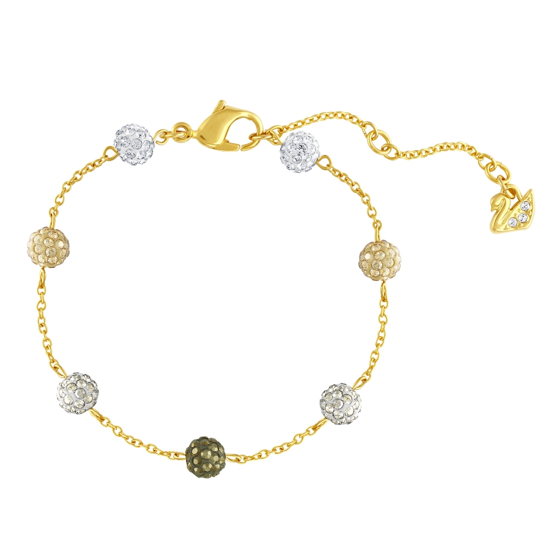 Этот кокетливый браслет украшен шариками с кристаллами металлических тонов в закрепке Pointiage®, похожими на пузыри. Они закреплены на позолоченной цепочке.