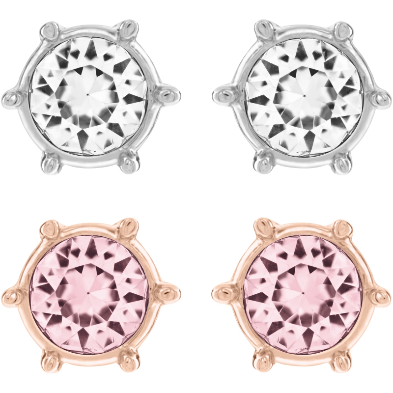 Этот комплект состоит из двух пар аккуратных круглых серёг-пусет. Одна пара блестит прозрачными кристаллами и родиевым покрытием на металлической основе, другая – нежно-розовыми кристаллами и покрытием из розового золота. Эти изысканные серьги легко впишутся в любой непринуждённый или офисный образ и станут прекрасным подарком. | |