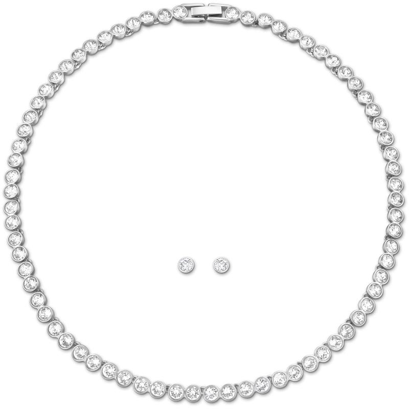 Этот комплект украшений с родиевым покрытием в стиле популярного браслета Swarovski Tennis состоит из прекрасного ожерелья и пары серёг-гвоздиков с прозрачными кристаллами. Ожерелье сверкает прозрачными кристаллами по всей длине. Эти элегантные произведения, простые и в то же время невероятно женственные, легко сочетаются с другими украшениями. | |
