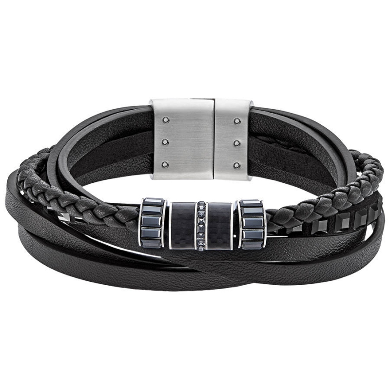 Браслет Swarovski Alto мужского дизайна сделан из таких материалов как чёрная кожа, углерод и сдержанно поблёскивающие чёрные кристаллы огранки «багет». Магнитная застёжка обеспечивает надёжную фиксацию. На выбор предлагается два размера (M и L). | |