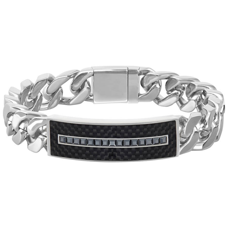 Этот броский инновационный браслет производит неизгладимое впечатление благодаря покрытым родием звеньям цепочки. Полоса чёрных кристаллов и металл с чёрным покрытием, нанесённым осаждением паров, создают цветовой контраст в мужском стиле. На выбор предлагается два размера. | |