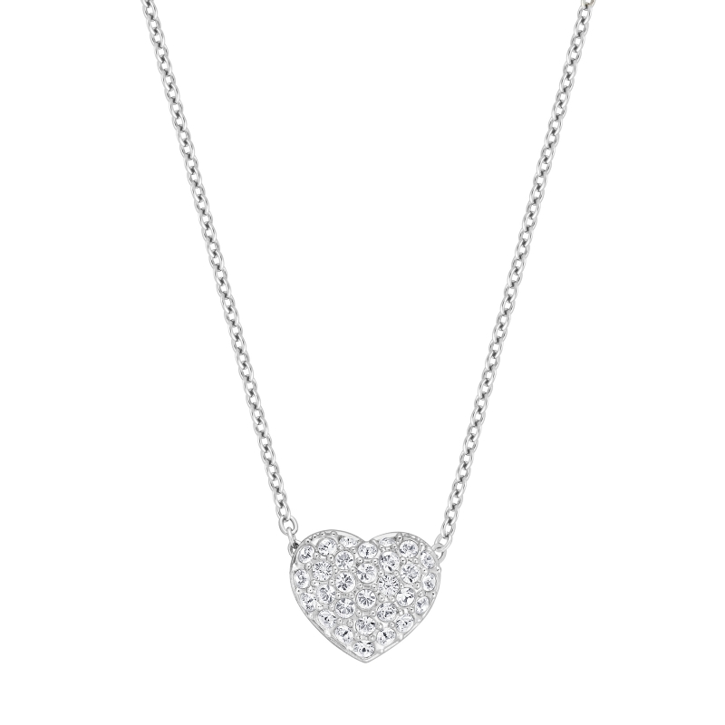Эта поистине классическая подвеска в форме сердечка сверкает прозрачным кристальным паве. Задняя сторона украшена восемью прозрачными кристаллами, закреплёнными по отдельности. К ней прилагается цепочка с родиевым покрытием. | |