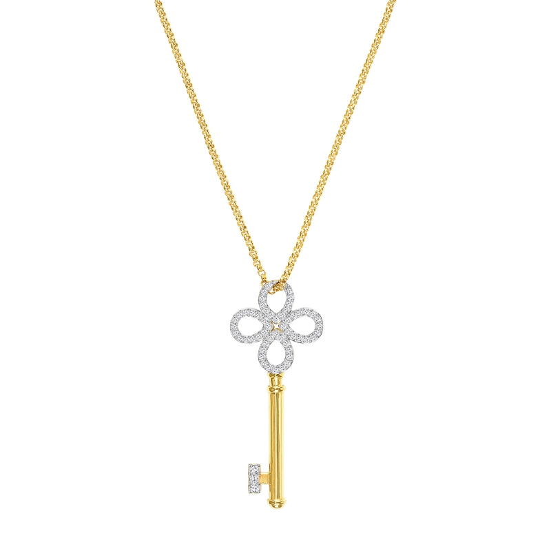 Кто хранит ключ к вашим секретам? Эта изысканная подвеска, таинственная и романтичная, подчеркнёт лнию декольте нежным сиянием позолоты. Аккуратный ключ сверкает прозрачным кристальным паве. К подвеске прилагается цепочка. Это украшение станет многозначительным подарком для дорогого вам человека. | |