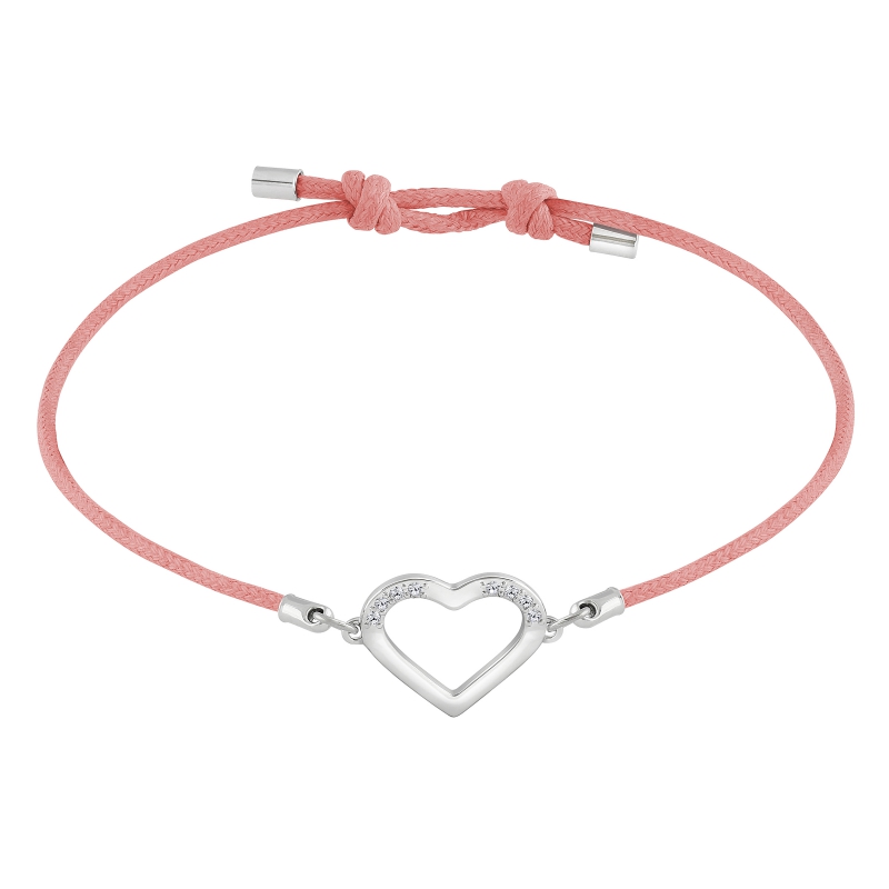 Этот нежный, очаровательный браслет лучше всего смотрится с тремя подвесками. На розовом хлопчатобумажном шнуре закреплено сердечко, украшенное прозрачным кристальным паве. Регулируемый механизм на основе узлов обеспечивает удобную надёжную фиксацию. | |