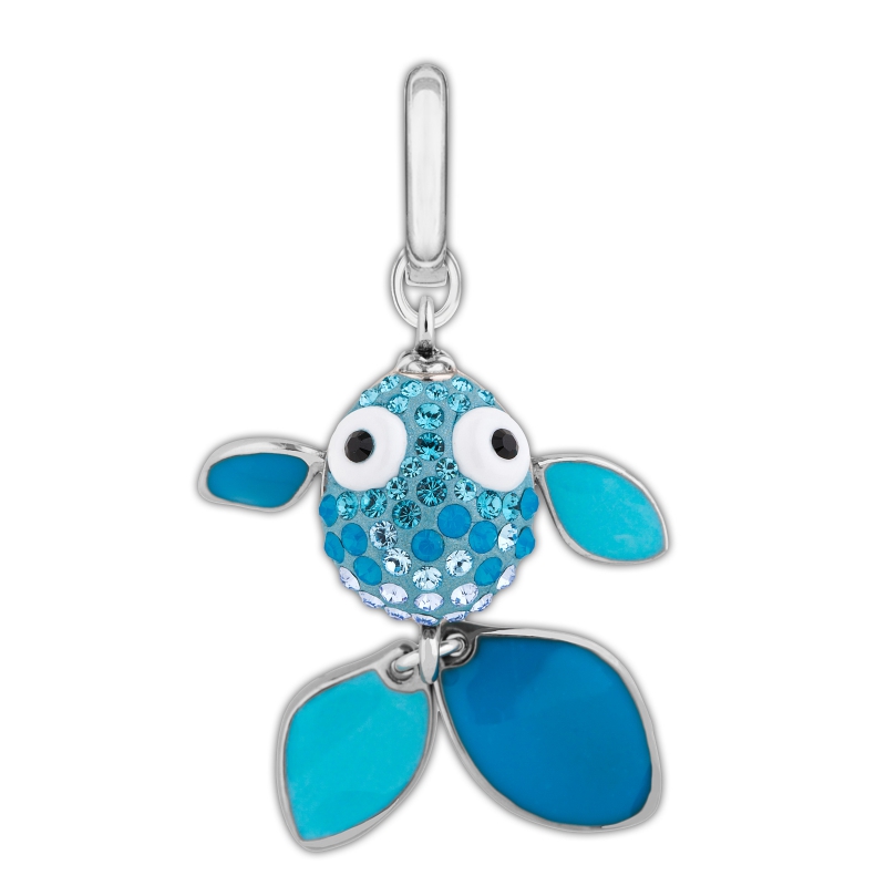 Очаровательное, весёлое и яркое украшение. Эта рыбка с палладиевым покрытием придаст вашим украшениям шаловливый вид. Она украшена сверкающим градиентом от кристаллов цвета Indicolite до прозрачных кристаллов в закрепке Pointiage®. Глаза сделаны из кристаллов цвета Jet, хвост и плавники – из синей эмали. | |