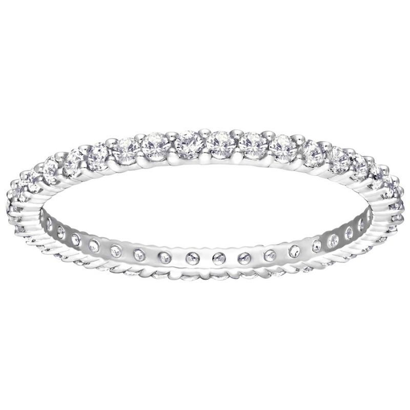 Роскошное кольцо, сверкающее со всех сторон. Это нежное произведение с родиевым покрытием, миниатюрное в соответствии с сегодняшней модой, украшено блестящими шатонами. Наденьте сразу два или три кольца: вместе они смотрятся ещё эффектнее.