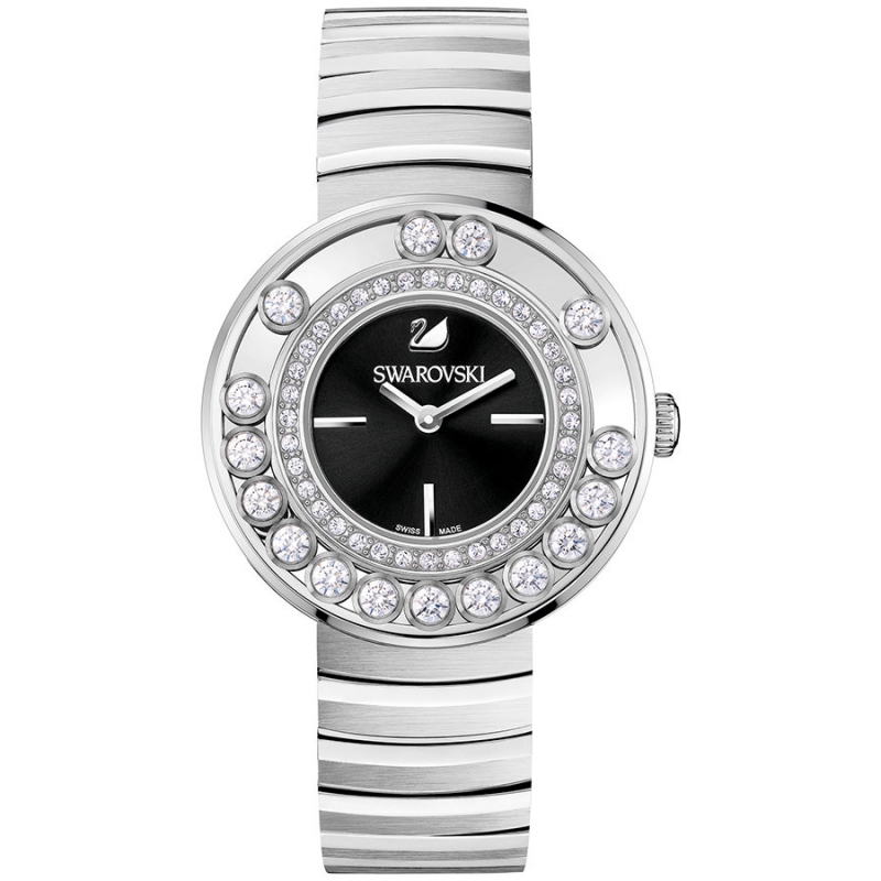 Стильный и неформальный женственный аксессуар. Циферблат этих часов украшен незакреплёнными элементами, которые перемещаются по замкнутому кругу. Описание: корпус – нержавеющая сталь с 16 подвижными белыми цирконами SWAROVSKI, сердечко на уровне метки 8 часов, 35 мм; циферблат – чёрный, с рисунком в виде солнечных лучей; цифры – закреплённые вручную родиевые метки, логотип в форме лебедя на уровне метки 12 часов; ремешок – браслет из нержавеющей стали; механизм – кварцевый, сделан в Швейцарии; стекло - сапфировое; водонепроницаемость - 30 м. | |